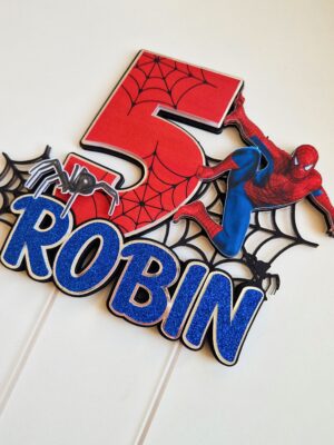 Paljude poiste lemmiktegelase Ämblikmehe ehk Spidermani ning rohkete ämblikuvõrkudega koogitopper. Topperil on kujutatud Ämblikmees, kes valmistub hüppeks suurelt numbrilt, võrkudega ümbritsetuna ning lisaks ka kaks väiksemat ämblikku. Topperi värvitoonid on inspireeritud multika värvidest – nimi on mitmekihiline ehk pealt sinise glitter, siis peegelhõbe ja must kartong. Suur vanuse number on pealt punane ning kaunistatud ei millegi muuga kui mustade võrkudega.