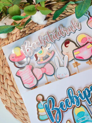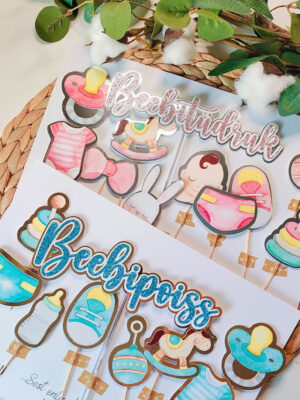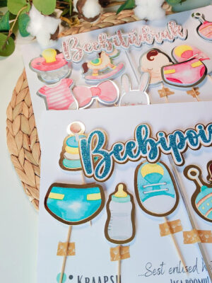 Armasate beebiteemaliste piltidega koogitopperite komplekt beebipeo ehk babyshower‘i või katsiku suupistelaua ja tordi kaunistamiseks! Beebiteemaliste piltidega topperite komplekti valmistame beebipoisi või -tüdruku saabumise tähistamiseks sobilikes toonides Sinu soovile vastavalt. Loo peolauale tähistamiseks sobilik meeleolu nunnude temaatiliste suupistetikkudega snäkkide juures ja tee tordist tõmbenumber “Beebipoiss” või “Beebitüdruk” kirjaga koogitopperiga.
