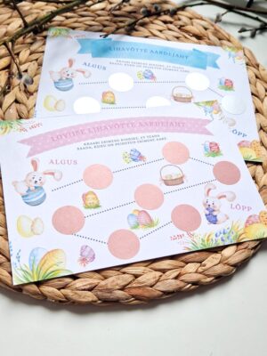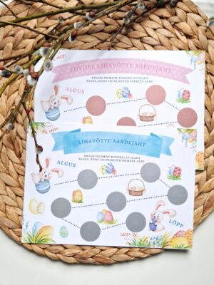 Muuda lihavõtted eriliseks ja korralda lastele lõbus ja kaasahaarav Kraabitav Lihavõtte Aardejaht! Aardejaht lisab pühadele põnevust ja rõõmu, pakkudes lastele võimaluse avastada peidetud aardeid. Aardejahi kaardil on 7 kraabitavat ringikest, mille alt ilmuvad vihjed aarete asukoha kohta – Sina saad ise valida, kuhu aarded peidad. See tähendab, et igal lapsel või mängukorral saab aardejaht olla erinev!