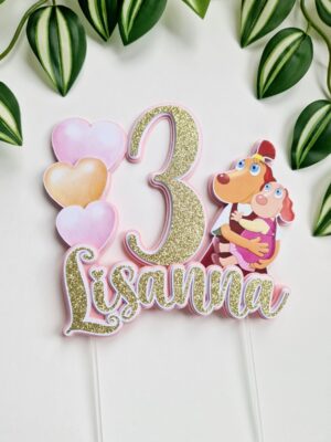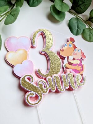 Laste poolt palavalt armastatud koeratüdruk Lotte tegelaskujuga koogitopper. Topperil on kujutatud Leiutajateküla Lotte, kes hoiab süles oma väikest õde Roosit. Samuti on topperil kujutatud roosakates toonides õhupallid, mis teevad topperi eriti pidulikuks ja sünnipäevatordi vääriliseks. Lapse nimi on kuldsest glitterist, misjärel tuleb valge kiht, seejärel õrnroosa ja viimaseks kihiks on kerge sädelusega roosa. Vanuse number on samuti kuldsest glitterist ja valgest kihist. Kogu topperi põhi on kerge sädelusega roosast kartongist.