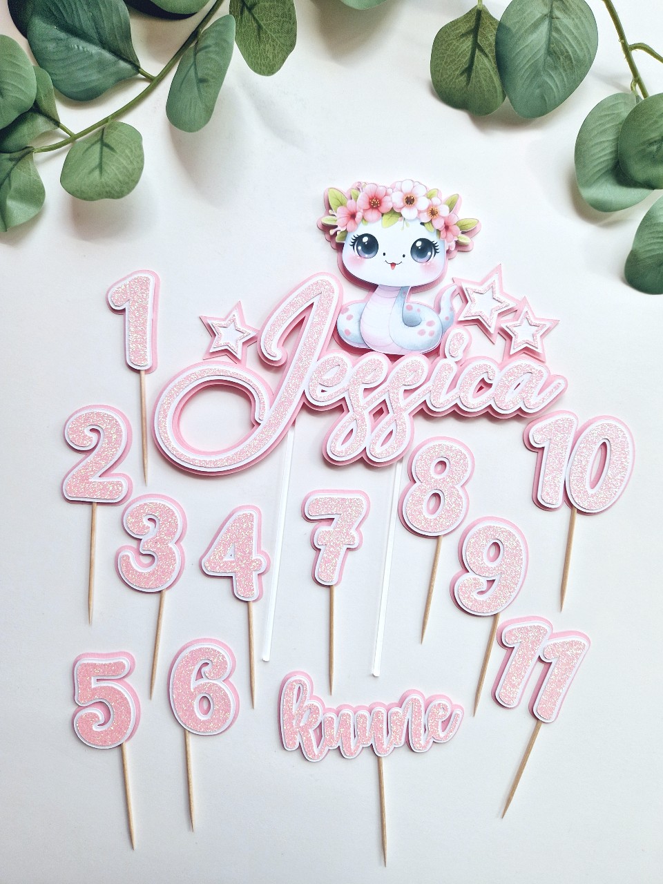 Koogitopperid on valmistatud kvaliteetsetest kartongidest. Nimetopper on kinnitatud läbipaistvate pulkade külge ja kuude topperid puidust suupistetikukeste külge. Topperite tagumine külg on ühevärviline ja kaunistamata. Soovikorral on võimalik komplekti värve vahetada (värvisoovidest saab teada anda kommentaarides).