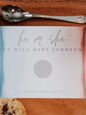 Anna perele ja lähedastele kõhubeebi soost teada huvitaval moel kraabitavate kaartidega! Ombrestiilis kujundusega “Poiss või tüdruk?” kaardil on lapse sugu peidetud kaardi keskele ühe kraabitava ringi või südame alla.  Beebi sooteatamise kaarte saab kasutada osana sooteatamispeost (gender-reveal) või tulevaste lapsevanemate, vanavanemate ja lähedaste põnevaks üllatamiseks.