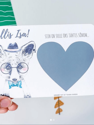 Valmiskujundusega Rebaseisaga kaardile on halli kraabitava südame alla peidetud sõnad, mida iga isa kuulda tahab – “Ilusat isadepäeva Sulle! Oled kõige parem isa maailmas. Aitäh, et oled olemas!”