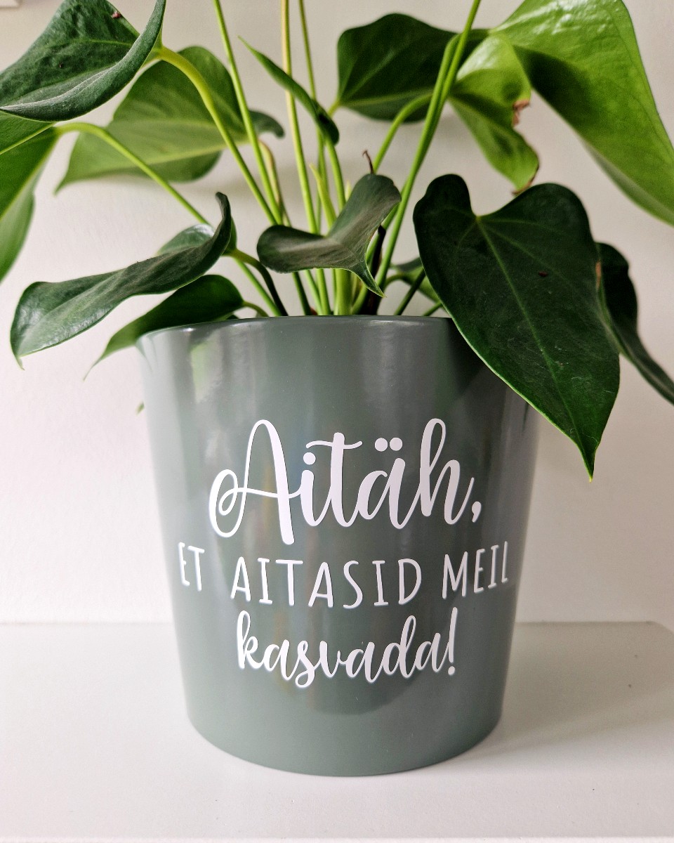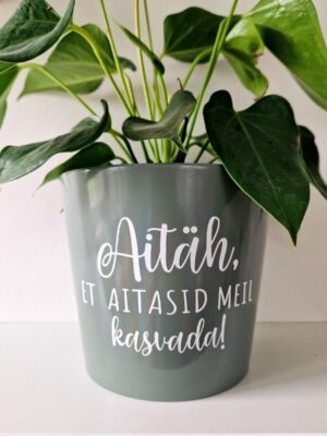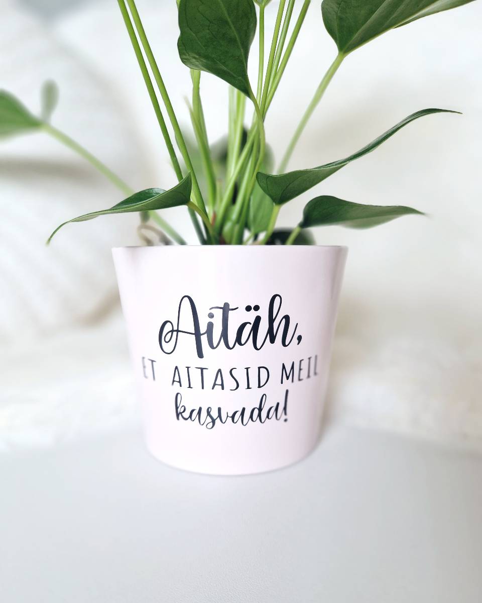 Lillepotti saab tellida kas ainult kirjaga “Aitäh, et aitasid meil kasvada” või kui lisada teisele poole laste nimed (kuni 10 nime), saab kingitus veelgi erilisema tähenduse.