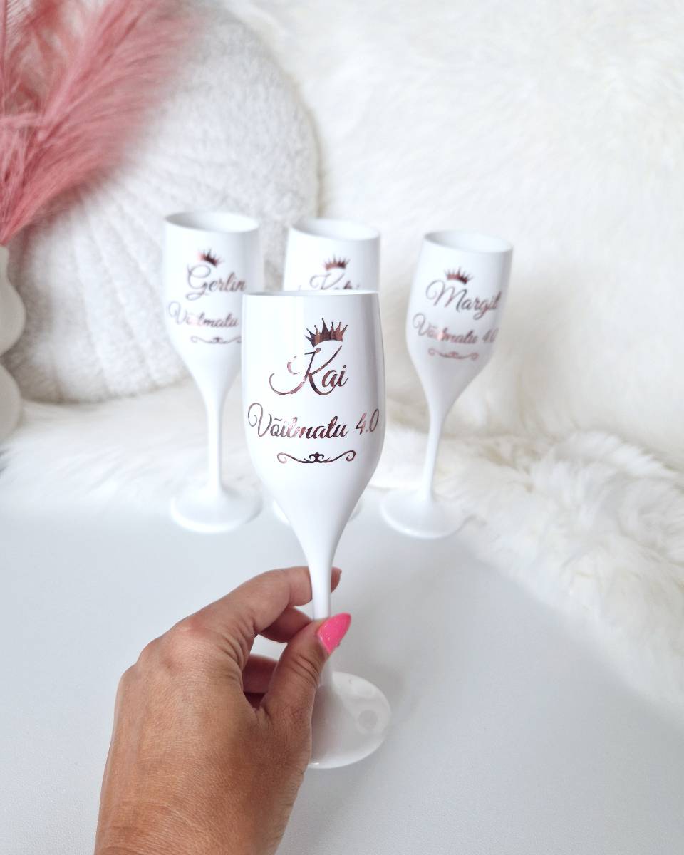 Oma tekstiga shampusepokaal on stiilne ja meeldejääv detail, mis sobib nii kingituseks kui ka peokaunistuseks. Kujutle, kuidas pidulikul hetkel tõstetakse pokaale, millel ilutseb sinu valitud sõnum – olgu see mõni armas tsitaat, nimi, kuupäev või hoopis humoorikas lause. Selline pokaal ei ole ainult jookide nautimiseks, vaid ka väärtuslik mälestus, mis jääb inimestele pikaks ajaks meenutama erilist sündmust.