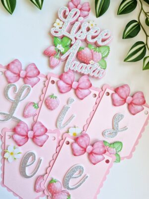 Bänneri lipukesed on ca A5 suuruses (15×20cm). Bänneri lipud ja tähed on mitmekihilised ja mahulised (täpsemalt sõltuvalt märgitud valikutest), mis annab dekoratsioonile ruumilise efekti ning on kaunistatud soovitud teemas. Bänner on valmistatud kvaliteetsetest kartongidest ning kinnitatud sobivas toonis atlaspaela külge. Bännerile saab lisada juurde otstesse rippuvaid paelu ja lehekesi.